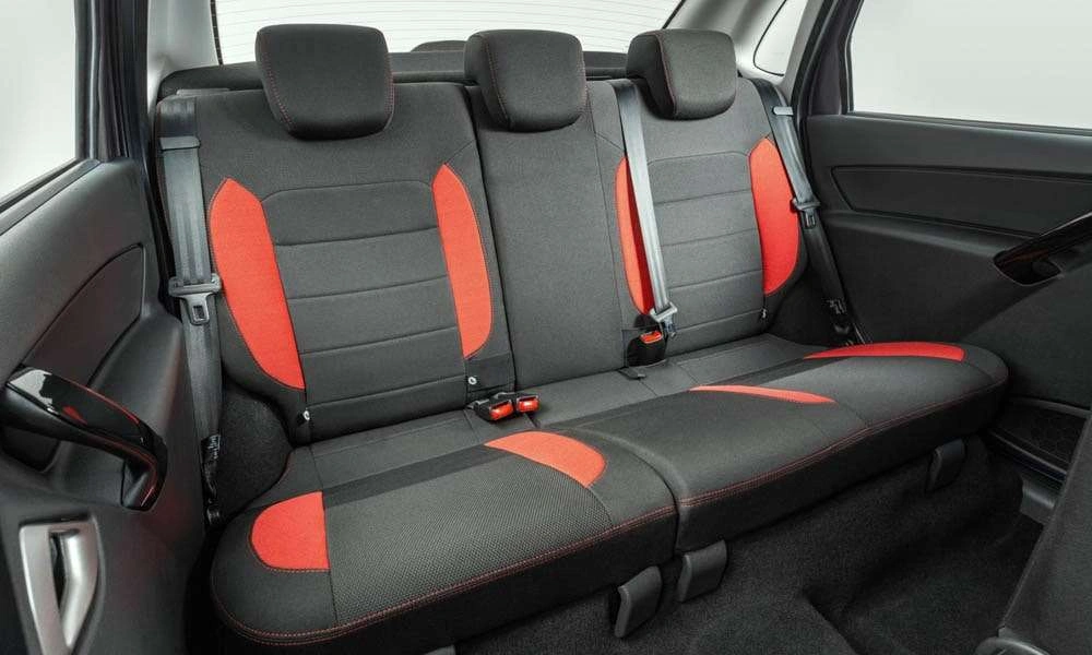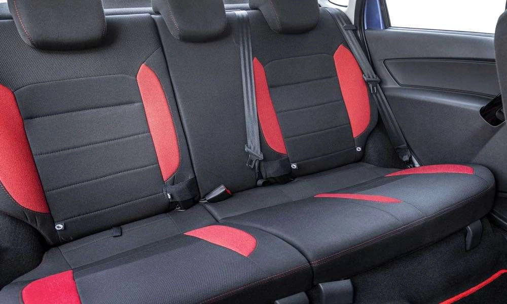 | Обивка сидений ткань. Цвет черный с красными элементами |